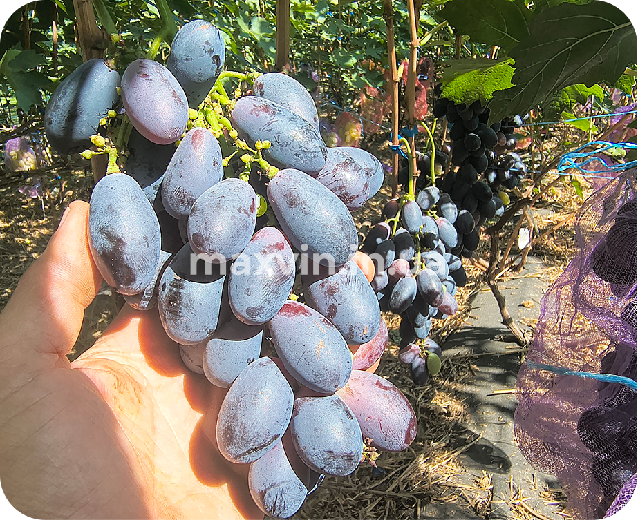 Вітаю виноградарі! Вашій увазі друге плодоношення сіянця 1/3 (назви поки не давав). Станом на 30.08.25р. в умовах міста Білгород-Дністровський повністю достигла. Цукор 20 брікс гармонійного смаку, м’ясиста та соковита. Виділив її бо дуже вражають параметри по ягоді і смак не гірший аніж вигляд. Чекаю плодоношенняв наступному році на прищепі.